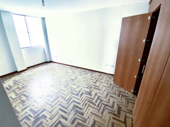Cuenta con sala y comedor bastante amplios con excelentes acabado, piso de porcelanato que continúa a través de una mampara hacia un balcón con la vista exterior. La cocina muy amplia con los cajones altos y bajos, espacio para un comedor de diario y ventana exterior. Tiene 01 Dormitorio principal con walking closet y baño completo con piso de parquet y 02 dormitorios secundarios con closet y comparten un baño completo con piso de parquet.